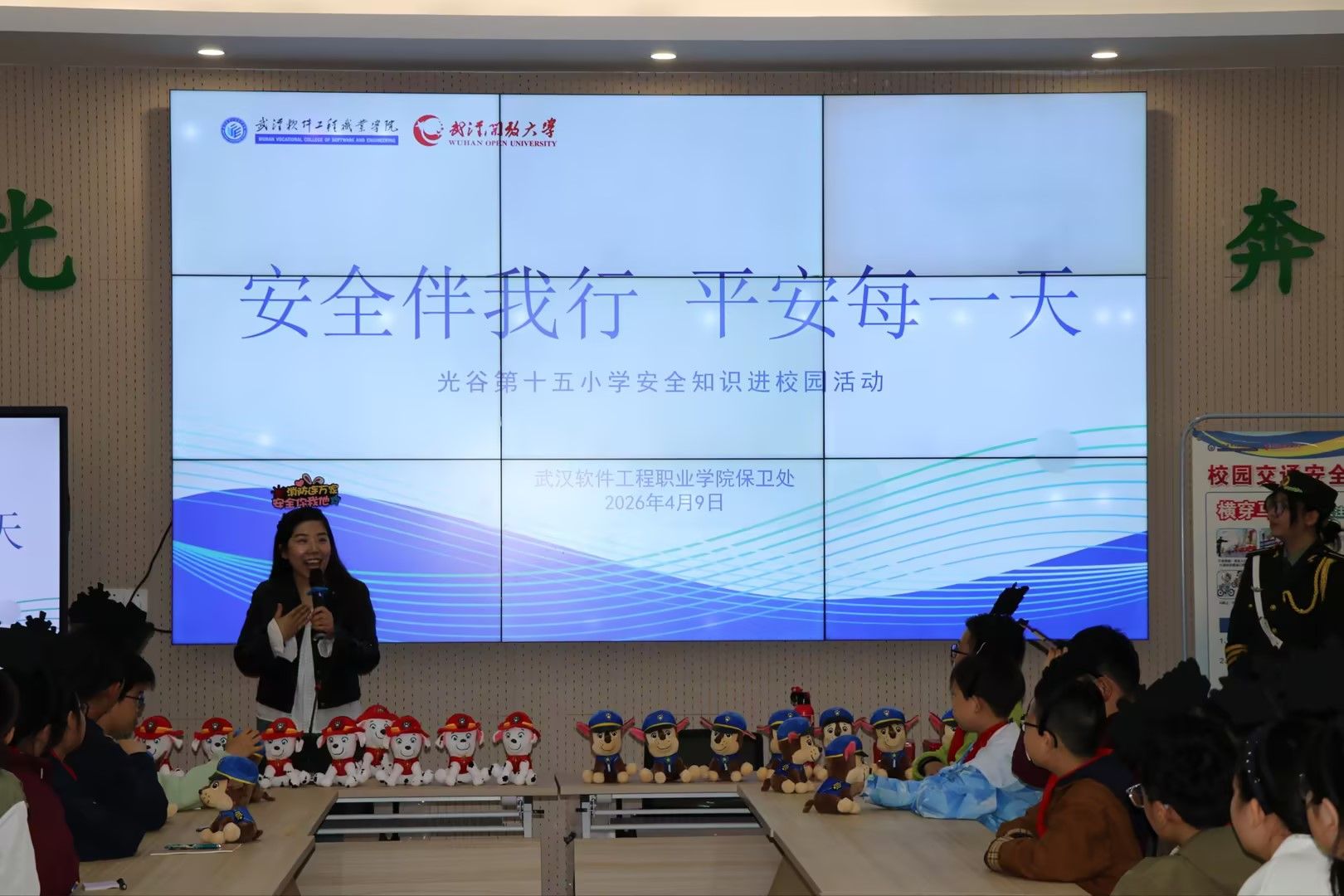 (通讯员 胡馨)4月9日下午,武汉软件工程职业学院保卫处4名教师代表、2名国旗护卫队学生和5名工作人员来到校园安全共建单位——光谷十五小武软校区,为该校高年级学生们带来了一场以校园安全为主题的知识宣讲活动。